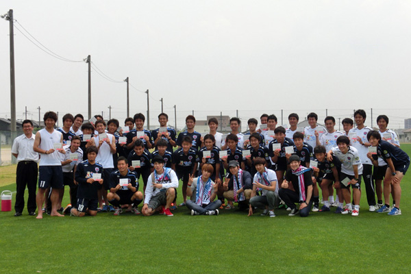 CODE-Vとサガン鳥栖との出会いは、メンバーがプロモーションで九州エリアを訪れた時。元々サッカー好きだったメンバーは、元・韓国代表の尹晶煥 監督や、ロンドンオリンピック韓国代表候補の金民友 選手ら母国を代表する選手が多数活躍しているサガン鳥栖に親近感を持った。