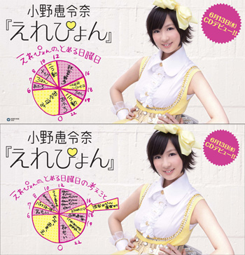 6月1日(金)から2週間にわたり、秋葉原駅電気街口壁面ボードと渋谷の渋谷西村ビル壁面ボードに、小野恵令奈のデビューシングル「えれぴょん」のアートワークが掲出されている。