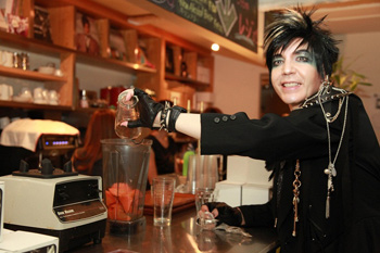 ちなみに、アダム・コスプレ店員に負けないほどの気合の入ったアダム・ランバート風スタイルに身を包んで登場するという熱烈なファンの姿も多く見られ、カフェはアダム・ランバート・カラー一色と相成った。