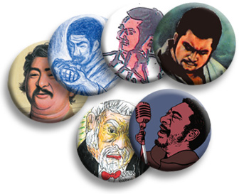 『歌いまくりまくりまくる勝新太郎大箱』は、Pヴァイン特設WEBショップで購入すると特典として勝新劇画の缶バッジセットがもれなくついてくるという、感涙のサービスも用意されている。御注目を。