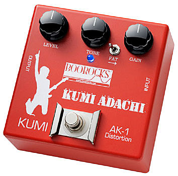 ロックからジャズ・フュージョンまで幅広い音楽性を持つアーティスト・安達久美の多彩なサウンドに対応するため、加えてBOOROCKS独自のサウンドを追求するため、ヨーロッパ製、アメリカ製をはじめ厳選を重ねたパーツを使用して、驚異的なレスポンスの早さ、広いダイナミック・レンジを実現。さらに徹底したローノイズ性は他の追随を許さない。また、ハムバッキングとシングルコイルというまったく性質の異なるピックアップであってもベストなディストーション・サウンドを供給できるよう、ファットスイッチを装備。もう1段、歪みの幅を広げられる。エフェクト・オフ時の音質低下を防ぐために、トゥルー・バイパス・スイッチ採用。女性アーティストとして、日本初のシグネチャーモデル・ディストーション。