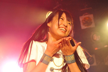 トップバッターを飾ったのは、名古屋を拠点に活躍するアイドル・デュオのしず風と、姉妹ユニットの絆~KIZUNA~。ディック・デイル「Misirlou」の印象的なギター・イントロが鳴り始め、絆~KIZUNA~の4人が空手の道着を着てステージに現れると空手の型を採り入れたダンスを披露。続けてしず風の2人が合流して「ドキドキパニック」へと突入。パワフルなライブに定評のある彼女たち、絆~KIZUNA~の晴子が客席に飛び出してオーディエンスの上を歩くと会場からは歓声と共に驚嘆の声が飛び交う。水を口に含んでの霧吹きや客席への背面ダイヴなど、ロック・バンド顔負けのアクションを次々と展開。