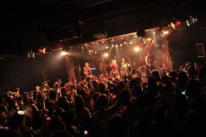 そしてアンコール、演奏中に突然曲がストップ。ざわつく会場を尻目に彼らの次なる展望が発表された。バンド名のごとく、予測不能な活動を展開する彼らならではの発表方法だ。