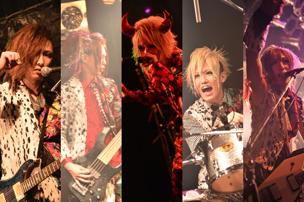 そしてそのファンの期待に応えるように、要所に毒が盛り込まれたキャッチーな楽曲達を惜しげもなく披露。さらにこの日は、ダンサーの登場やメンバー5人全員がヴォーカルを務める(しかも誰も楽器を持たずに!)など、V系と呼ばれるバンドのライヴでは珍しい演出でもオーディエンスを楽しませた。こうした試みは、カメレオが一バンドに留まらない、“エンターテイナー”としての心意気を形にしたものだったのではないだろうか。そうして来場したファンを笑顔にし、彼らの“新宿区デビュー”は幕を閉じた。