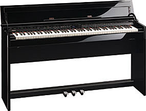 最大の特徴は、ローランド最高峰の音とタッチ。ローランドの最新技術「スーパーナチュラル・ピアノ音源」により、タッチの強弱に応じた無段階の音色変化、自然な減衰音など、グランドピアノの音を忠実に再現。鍵盤は、従来モデルよりさらに高い連打性と表現力を実現し、上級者の演奏技術にも応える。また、吸湿性のある素材を採用した象牙調の鍵盤となり、自然なタッチで心地よく演奏できるのもポイント。本体はコンパクトなボディながら、スピーカー・ボックスを搭載、豊かで広がりのあるサウンドが楽しめる。
