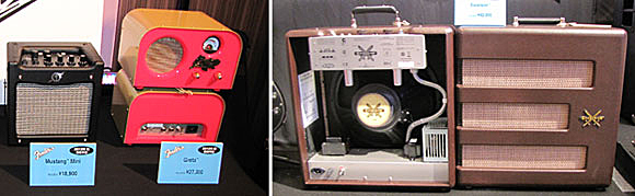 ▲Fenderのアンプ新製品としては、Mustang Mini同様のコンパクトさと赤いボディが目を引く真空管アンプGreta(27,300円)、Fender Excelsior(42,000円)も展示。2012 NAMMで発表されたモデルで、いずれも夏発売予定。