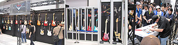 ▲Fender Custom Shopのブール春畑道哉、高中正義、チャー、ken、INORANなど歴代日本人シグネチャー・モデルがずらり。マスタービルダーによるデモンストレーションも多くの来場者を集めた。