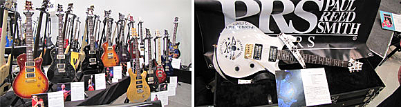 ▲PRSのブースではTAKUMI(YELLOW FRIED CHICKENz)の使用モデルはじめ、多くのアーティストの使用モデルが写真とともに。