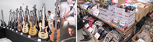 ▲意外と少ないベースの展示。Warwickは新モデルなど多数を用意。隣りのコルグ・KIDブースではチューナーやシールドなどを特別価格で販売。