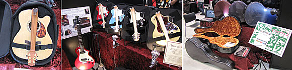▲ネックが折りたためるアコースティックギター&エレキギターでおなじみのVoyage-air Guitar製品を展示したスリージーインターナショナル。「世界最強ケース」をうたったHoffee Carbon Fiber Casesをぶつけたり投げ落としたりといったやりすぎ実験動画は同社サイトでチェック!