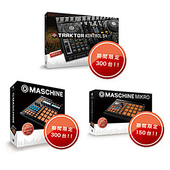 今回のキャンペーンでは、「TRAKTOR KONTROL S4」「MASCHINE」「MASCHINE MIKRO」がそれぞれキャンペーン限定価格で提供される。いずれも台数および期間限定。キャンペーン期間は8月31日まで。通常価格より12,000円から23,000円もおトクになるこのチャンス。なくなり次第終了となるので、気になる方は早めのチェックを。