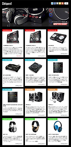 Reloop日本特設サイトでは、TERMINAL MIX 4、TERMINAL MIX 2、BEATMIXといったコントローラー、ターンテーブルRP-6000 MK6、DJ用CD / MP3プレイヤーのRMP-3 ALPHAはじめ、DJミキサーやスピーカー、ヘッドホンなど数多くの製品がリストアップされている。