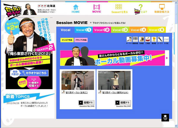 なお、集まったセッションは番組ホームページに順次公開され、最終的に番組で吉幾三本人がグランプリを決定する。
