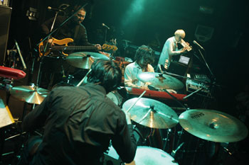 音源での繊細さが随所に活かされたこのブロック。川崎による民族楽器や石毛の鳥笛がユニークな「Machu Pichu」は、途中からノブのピアノ叩き弾きで熱を帯びた展開に。チェンバーロック的な「Through Dark Night」や、少ない音数の抜き差しでダイナミズムが形成されている「Memory Of Eternity」には、バンドセットならではの柔らかな表現を実感。しかし、以前からセッションしていたとはいえ、たった3本のライブでこの絶妙な呼吸を生み出すとは、さすが強者ども!と感じずにはいられぬ演奏だ。
