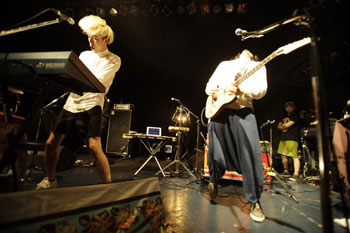 本編ラスト2曲を告げた後は、ダンスロックにアレンジされた「Red Cat」でフロアが最高潮に。そして、「最後の1曲は僕の地元、北浦和を思い浮かべ…昔、僕らのHPとかを作ってくれた友だちが天国で作ってくれた曲でもあります」と「My Hometown」を紹介。友だちと一緒に遊んだ街、その風景などを聴く者それぞれの心に想起させたのではないだろうか。メロディオンの音色は、壮絶に太いバンドアンサンブルに、どこか温かな感触を残す。その圧巻の演奏に惜しみない拍手が起こった。