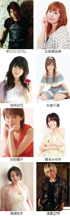 彩音、いとうかなこ、CooRie、佐咲紗花、高取ヒデアキ、谷本高義、Zwei、NoB、橋本みゆき、yozuca(50音順)