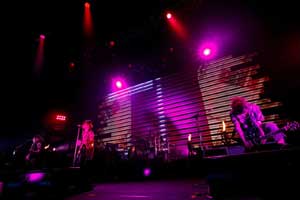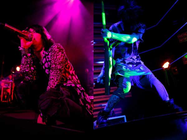 今回のツアーからは、ギターを持たないで、ハンドマイクでヴォーカリストに徹するシーンが増えたHYDE。彼が歌いながら、フロアの最前列の観客の手が触れそうなほどの距離まで身体を接近させファンを挑発していくたびに、場内には凄まじい悲鳴がわき起こる。また、ときにはHYDEとK.A.Zが突然2階の客席にまで乱入して、ファンをあっと驚かせた夜もあった。