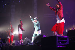 デビューから約5年、23歳で初となる武道館でのワンマン・ライヴ。アルバムのオープニング・ナンバーとなる「Get Back」からスタートし、生バンド&6人のダンサーと共に登場して一気に会場を盛り上げると、2曲目の「Gamble」ではイスを使ったダンスを披露。初武道館の緊張を全く感じさせない、パワフルなパフォーマンスと圧倒的な歌声でファンを魅了した。