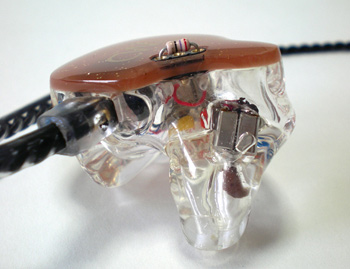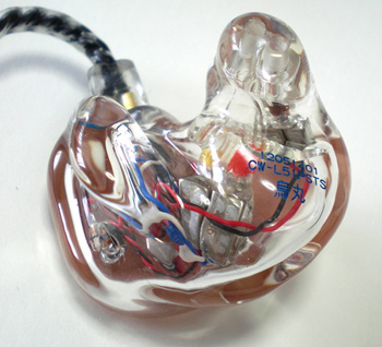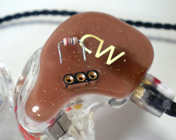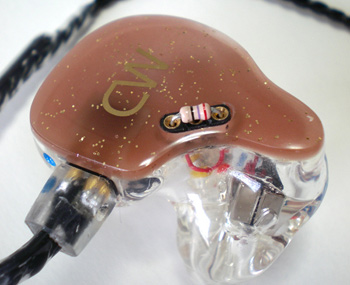| ▲カナルワークスCW-L51 PSTS。PSTS=パーソナルサウンドチューニングシステムを搭載しないノーマルCW-L51も制作可能で、そちらの場合は抵抗はシェル内に収められフェイスプレートは通常のものとなり、5000円安くなる。 |