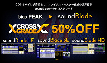 BIASの「Peak」を使っているなら、soundBladeへ編集環境を移行するのはとても簡単。同時に、多くのマスタリング・スタジオで標準のツールとして使われている、soundBladeの音質にも驚くはず。何百万枚というCDがsoundBladeを使って制作され、ジョージ・マッセンバーグ、ブルース・ボトニック、ギャヴィン・ラッセンなどの著名なエンジニアが愛用し、ユニバーサル・マスタリング・スタジオなど世界中のマスタリングスタジオでも活用されているsoundBlade。クロスグレード版の提供は、その機能とサウンドを、体験する絶好の機会というわけだ。
