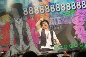 開始15分でがっちりと観客の心を掴んだ後は、3人それぞれのソロパートへ。まずは、まらしぃが「ヒャダインのカカカタ☆カタオモイ-C」「コネクト」といったニコニコ動画でも人気のアニメソングをピアノサウンドで印象的に響かせれば、紅い流星がゲストボーカルに人気の歌い手・that(ザット)を迎えてボカロ曲「からくりピエロ」「rain stops, good-bye」をしっとりと聴かせる。