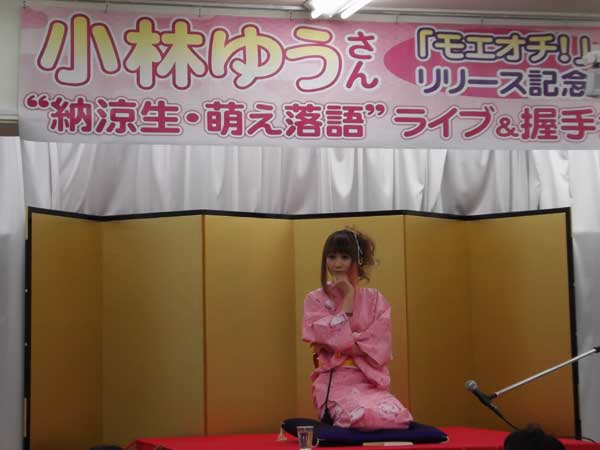 声優小林ゆうが“女子萌え落語”に挑戦した新作落語集『モエオチ!』の発売を記念したイベント<納涼生・萌え落語 ライブ&握手会>が、8月5日(日)、モエの聖地・秋葉原で行なわれた。
