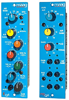 maag audio EQ4は、API 500-6B lunchboxおよび500VPRラックシステムフォーマットの“AIR BAND”(2.5kHz-40kHzシェルフ・ブースト)を搭載した6バンド・イコライザー。