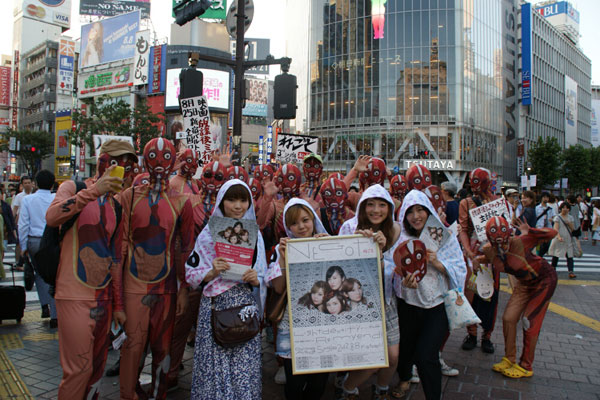 この日、ねごとのメンバーは揃って電車と徒歩で移動しながら、都内タワーレコード(池袋店、新宿店、渋谷店)、新宿アルタ前、ハチ公前、渋谷スクランブル交差点、SHIBUYA TSUTAYA、などを行脚。人体模型部隊は総勢40人以上におよび、そのインパクトは各所、街行く人々の視線をクギヅケにしていたようだ。