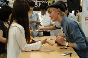 「日本人はとても親切で、ちょっとシャイだけど勤勉で、スウェーデンとは全く違う文化を持っている」と祖母に聞いてきたというウルリックは、集まった200人を超えるファンに大感激。