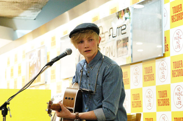 「まだ日本ではCDデビューしたばかりなのに、これだけファンが来てくれたことに感謝しています。とてもエキサイティングなことです」とファンに感謝。そして自らの音楽体験について「3歳の頃からキーボードを演奏し始め、ピアノのレッスンに通ったりしましたが、10歳の時にギターを買ってもらい、その頃から作曲を始めました。作曲はギターかピアノでやっていますが、家でギターを弾いている時に思いついてメロディを書き留めるということが多いですね」と語った。