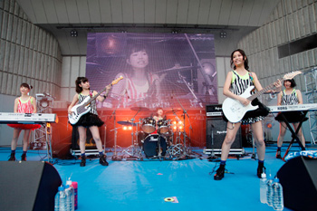 赤と黒のストライプが映えるロック調の衣装で登場した9nineは、「みんな9nineの野音が始まるぞ!」(吉井)、「みんな待っててくれた!私たちも待ってたよ!」(川島)、「てめーら、暑さに負けてんじゃねぇだろうな!最後までとことん行くぞ!」(佐武)のかけ声で、オーディエンスを一気にヒートアップ、「FLY」のパフォーマンスがスタートした。オーディション合宿の課題曲でもあり、このメンバーで9nineとなるきっかけになったこの曲をバンド演奏で披露するといういきなりのサプライズにファンの声援は止まらない。