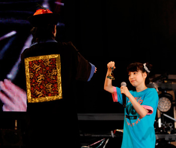 客席からの鳴り止まないアンコールの声に応え、再び登場したメンバーは「ほんと夜になって風も吹いてきて…気持ちいい!」と心境を話しつつも、不気味なテーマソングが流れるとそこに現れたサプライズはキョンシーだ。