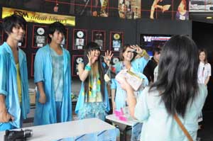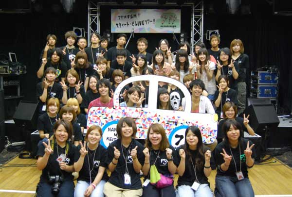 7!!のメンバーと学生たちが直接会ってミーティングを重ね、学生たちと一丸となり、着々と準備を進めてきたこのライヴイベント。メンバーが会場に到着すると、すでに学生たちが7!!のために作ったポスター、冊子、ちらし、オリジナルのチケット、スタッフパスなどで彩られ、学校全体が7!!一色となっていた。