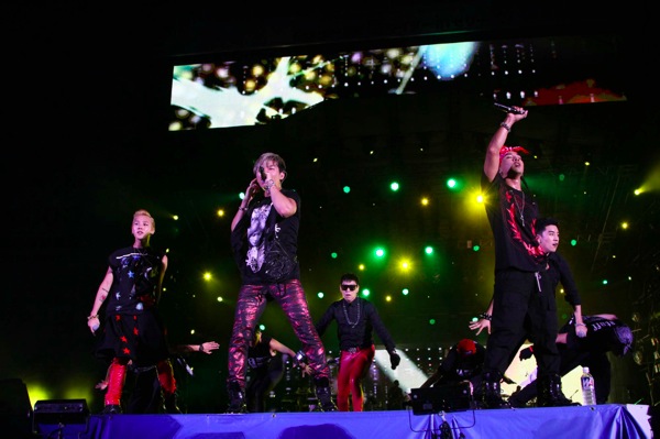 さらに、「日本のファンのみなさん、盛り上がってますか? (メンバーに向けて)今日はですね、BIGBANGのみなさん、見てください。5万人のお客さんが来てくれました。<a-nation>という素晴らしいお祭りで、素晴らしいアーティストの方々が出演されています。」と、日本に長期滞在しているV.Iが、<a-nation>のことをほかのメンバーに説明。D-LITEはこの会場の熱狂を前に「熱がすごくて死んじゃう。」、SOLは「ホントに嬉しいです。こんなにたくさん来てくれて、Love You TOKYO!!」とコメント。何も言わなくても歓声が巻き起こることにV.Iも嫉妬するG-DRAGONは、「FANTASTIC BABY! FANTASTIC BABYって言葉がピッタリ。」と、観客の絶叫を引き出す。T.O.Pは、「超暑いですけど……。」と口にしたところで、V.IがT.O.Pの衣装を見て「このシャツ、暑くない? 大丈夫なの? パンツはレザーじゃない?」とツッコミ。そんなやり取りの中で、SOLの煽りに合わせてT.O.Pのボイスパーカッションが始まり、やがてステージ上は収集がつかない事態に。「あのさあ、みんなちょっと落ち着いて。」と、V.Iは何とか立てなおそうと必死。ところが次の曲「Haru Haru」のイントロまで流れ出して、V.Iも思わず「なんじゃこりゃ!」。その後もBIGBANGは「ガラガラGo」や「Bad Boy」「MY HEAVEN」などを披露して、ひたすらにアゲ続けた。