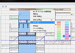 ▲範囲指定してセクションを設定、入れ替えやパートの繰り返しが楽に行える。色の変更も可能。