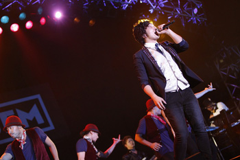 続いてflumpoolが登場。「今日みなさんに会えて直接音楽を届けられることがすごくうれしい。気持ちを全部ぶつけていきますんで、楽しんでいってください」と、何度もコール&レスポンスで会場をもりあげ、7曲を熱唱しました。