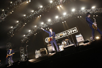 2組目に登場したのは、THE BAWDIES。クラップ、シャウトと会場がライブハウスとなったような熱気に包まれました。ラストには「ロックンロールはみんなの心のはみ出した部分。みんなで飛び跳ねてくれますか~」と会場をあおり、会場全体がジャンプする熱いステージを見せてくれました。