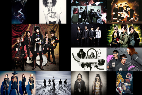 ▲acid android、AA=、BUCK-TICK、cali≠gari、氣志團、D’ERLANGER、BREAKERZ、Pay money To my Pain、POLYSICS、MUCC、MERRY、THE LOWBROWS、N’夙川BOYS。