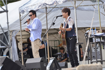 「手紙」「流星」「To calling of love」とバラード曲が続くコーナーでは静まりかえった会場に、風の音と二人の歌声だけが響いていた。風にのって会場の外まで届いていた二人の歌声は、暑さを少し和らげてくれるほど透き通り、会場を包んだ。