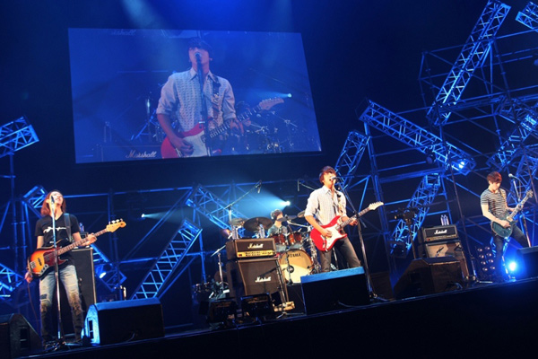 暗転した会場に響き渡るギターの音からライブがスタート、アルバムから初披露の曲「with me」「Have a good night」に最初から会場は熱き一体感を見せる。「みなさんこんにちは、CNBLUEです!今日は月曜日ですが、みなさんお仕事はないんですかー?僕たちのこのイベントは仕事じゃなくて趣味です!」と、和やかな雰囲気でイベントは進行していった。