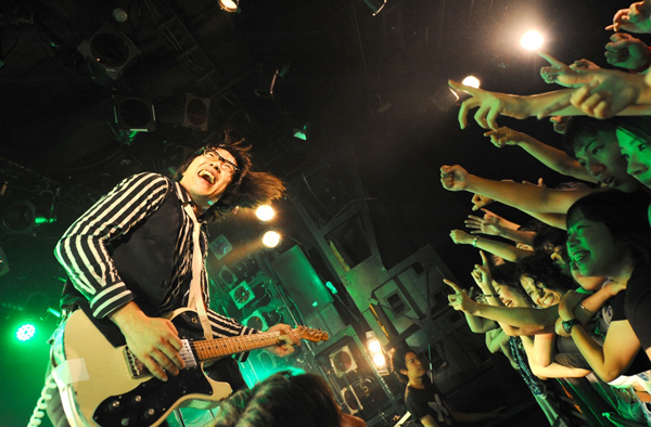 ザ50回転ズおなじみのSEでメンバーが登場。幕開けはもちろん「50回転ズのテーマ」だ。アッパーチューンを立て続けに披露して畳みかけ、場内は完全にヒートアップ。後半、ダニー(Vo&G)が“新曲です”と次回作に収録されるミディアム・ロックチューンを披露したりと、内容の濃いパワフルなステージパフォーマンスを見せつけた。