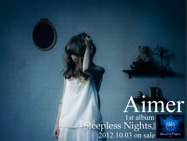 あらかじめ何かをあきらめているような、それでいて何かをすごく切望しているような、その歌声に撃ち抜かれる。昨年(2011年)の9月にデビューし、以来、楽曲を発表するたび、その歌声が反響を呼び、注目を集めてきたAimerが、待望の1stアルバム『Sleepless Nights』をリリース。“眠れない夜に聴いてもらえるようなアルバム”がコンセプトの本作は、Aimerの嘘のない想いが詰まっていて、眠れない夜はもちろん、いつでも心にそっと寄り添ってくれる一枚になっている。これまでインターネットライヴ以外、ほとんどメディアに登場することのなかった彼女が、BARKSに初登場だ。
