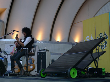 THEATRE BROOKの佐藤タイジが、10月27日(土)代々木公園で開催された<アースガーデン”秋”2012>にゲストで出演、太陽光発電で生み出した電気を使ってライブを行った。佐藤タイジは12月20日に太陽光発電の電気のみを使った武道館ライブ<THE SOLAR BUDOKAN>を予定しているが、今回のイベントは、そのライブに備え、公演当日に使用予定の電源システムを実際に試してみる公開実験の意味も持つものだ。