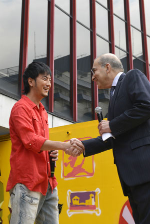 駐日ブラジル大使館前広場で行なわれた就任式では、在日ブラジル人学校の生徒を中心に150名が見つめるなか、駐日ブラジル大使マルコス・ベゼーハ・アボッチ・ガウヴォン氏から「才能豊かな遊助さんに、日本でのセルタネージョのスポークスマンになっていただきます」と紹介され、早速新曲「VIVA! Nossa Nossa」を披露。