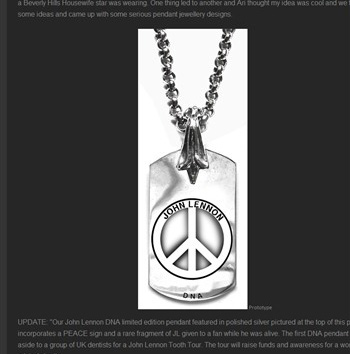2011年秋、オークションで落札された故ジョン・レノンの臼歯がペンダントになり、口腔癌など口内の健康への関心を高めるため、英国各地の歯科医院を巡回している。