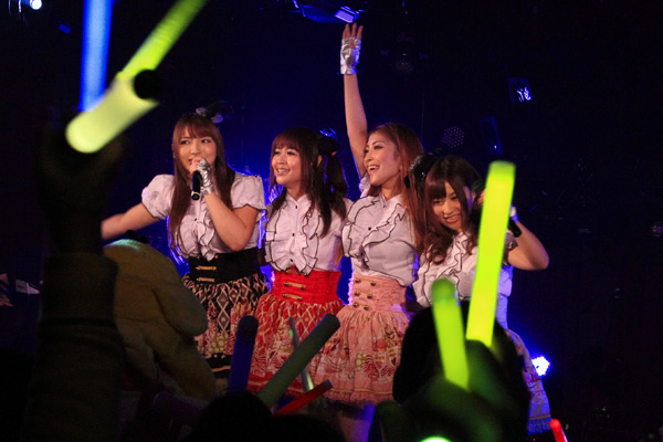 そんな寸劇に苦笑するしかないオーディエンスと、自身のピンチすらネタに変えてしまう桜ここみ。不思議とフリーダムに満たされたところで、彼女たちもカバーしているリンドバーグのヒット曲「今すぐKiss Me」に、超絶アップテンポなMaika作詞の「You are addicted」を続けて披露。全力のパフォーマンスで、メンバーの肌には玉のような汗が浮かび、そしてライトを浴びてきらめく。