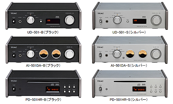ティアックは、USBオーディオ・デュアルモノーラル・D/Aコンバーター「UD-501」、192kHz USB入力対応プリメインアンプ「AI-501DA」およびDSD/PCMディスク再生対応CDプレーヤー「PD-501HR」を11月上旬より発売する。