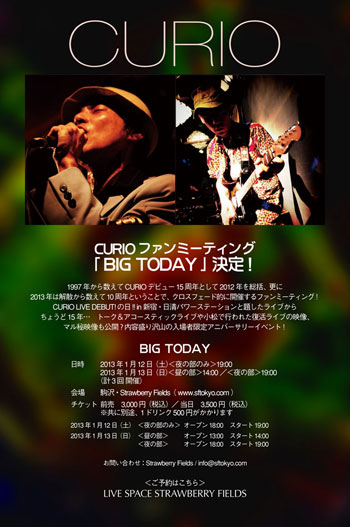 2012年10月に復活ライヴを行ったCURIOが、2013年1月、ファンミーティング<BIG TODAY>を開催する。