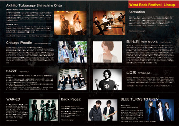 第1回目となる当フェスに登場したのは、doaの徳永暁人と大田紳一郎率いるスペシャルバンド、Chicago Poodle、凄腕プレイヤーが結集しているSensation、ネオビジュアルバンドHAZZE、新進気鋭の3バンドWAR-ED、BLUE TURNS TO GREY、Back PageZ…と、ジャンルも世代も超えたアーティストが顔を並べた。