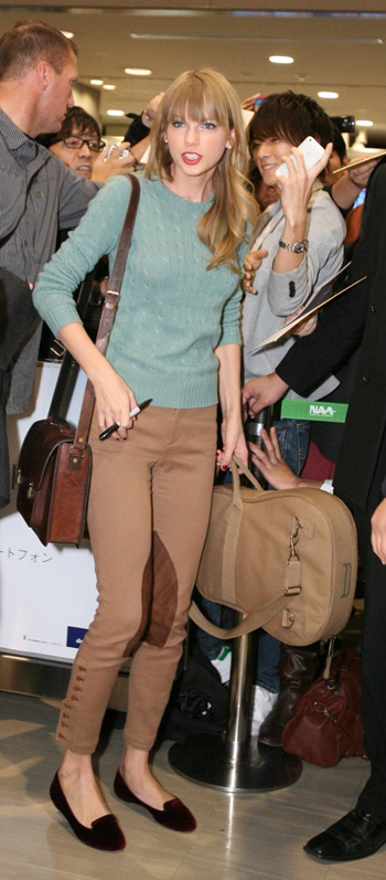 テイラー・スウィフト、かわいいモード全開で成田到着